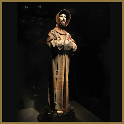 Todavía quedan un par de salas, como un epílogo épico con esculturas de diferentes santos, de las que ya he comentado el San Francisco de Toledo. Como la mayoría son monjes con votos de pobreza, se quería reflejar que las ropas estaban hechas a base de parches de diferentes tejidos ya usados. Y aquí también lo peta Pedro de Mena, porque esculpe y pinta cada parche de forma «independiente», hasta que parece más real que si hubiera puesto un hábito de verdad a sus esculturas. Destacar además una de los mejores obras de Pedro de Mena que hay en la provincia de Málaga, el San Francisco del Museo Ciudad de Antequera que es una de sus piezas estrella y rara vez sale de su museo… y también está ahora en esta exposición del Palacio Episcopal de Málaga.